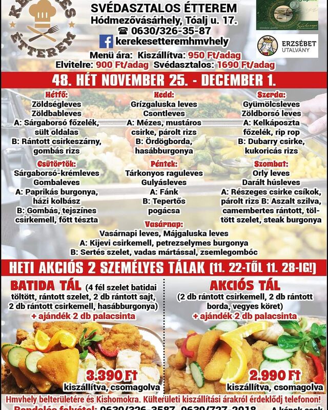 - Ételallergia és diéta - Konyhánk kiemelten figyel a fogások vegetáriánus, vagy étel érzékenységek kezelésére ha kérik. Gluténmentes és laktózmentes fogások széles választékát kínáljuk speciális táplálkozáshoz. Segítünk Önnek, hogy étkezés során szem előtt tudja tartani egészségét, és hogy tudatosodjon Önben, hogy valójában mennyire finomak lehetnek az egészséges ételek. Sok szeretettel, és odaadással bonyolítjuk le a rendezvényét! Fizetési lehetőségként elfogadjuk a VISA-t, a Mastercardot, a PayPal-t, az Erzsébet-utalványt, a SZÉP kártyát, az érintésmentes fizetést és a hitelkártyát. Ezen kívül készpénzzel is fizethet. Szívesen segítünk zárt körű rendezvények lebonyolításában is. További információkért és foglalási részletekért forduljon hozzánk bizalommal. Álomesküvők felejthetetlen környezetben. Örömmel fogadunk be nagyszabású rendvezvényeket, és segítünk nagy napja lebonyolításában. Vasárnap kivételével minden nap nyitva vagyunk.
